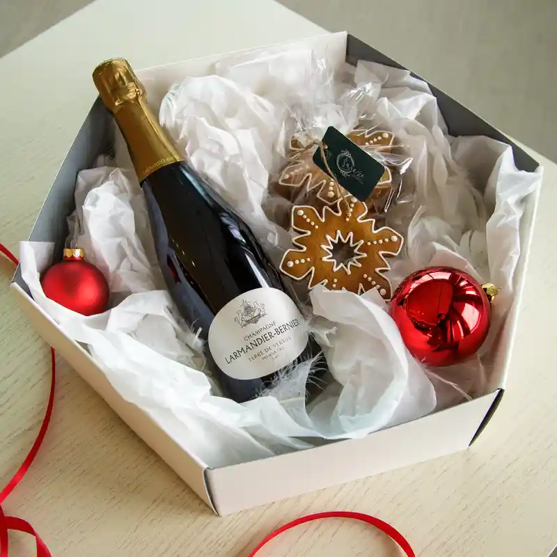 To wino powstaje całkowicie z chardonnay rosnących na pojedynczej parceli w Vertus. Ma subtelny aromat zielonego jabłka i cytryn, w smaku jest łagodny, kremowy, pienisty, z finezyjną słoną końcówką. Nie brakuje mu złożoności ale pozostaje zwiewny i kruchy. - Pierniczki z mikro piekarni z Warszawy Świeżo - piekarnia rzemieślnicza.