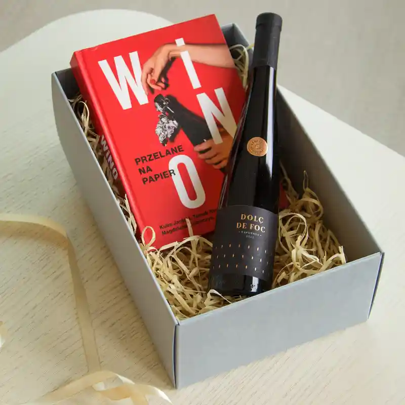 Ciekawa lektura i interesujące wino. Razem stanowią słodki zestaw prezentowy z pobudzającym zmysły aromatycznym winem deserowym i wciągającą książką.